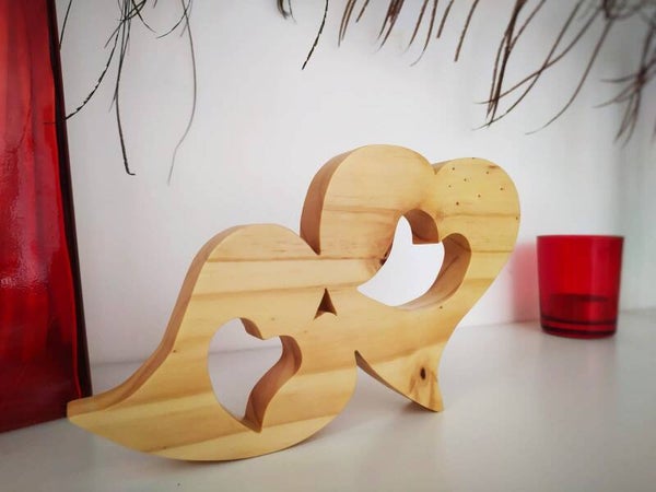 En pin, entièrement découpé à la scie à chantourner et poncé à la main.