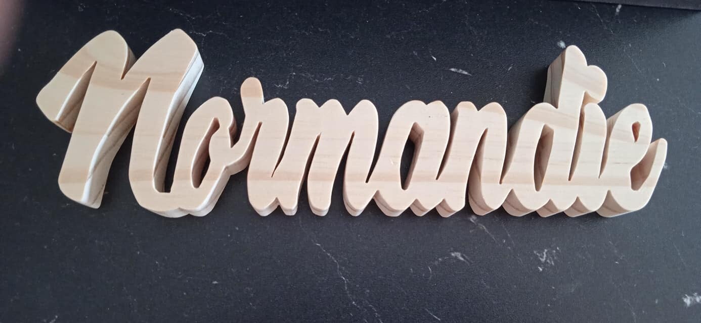 En pin, entièrement découpé à la scie à chantourner, poncé à la main.