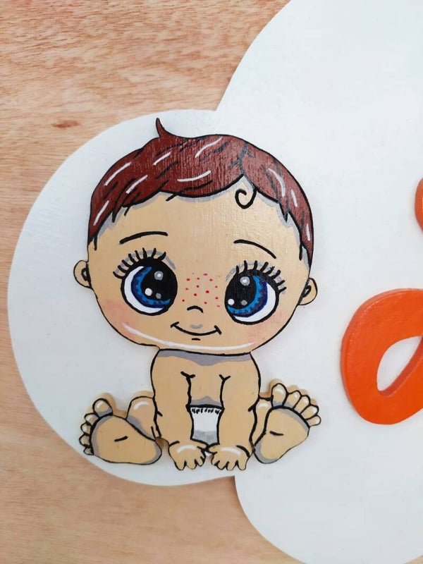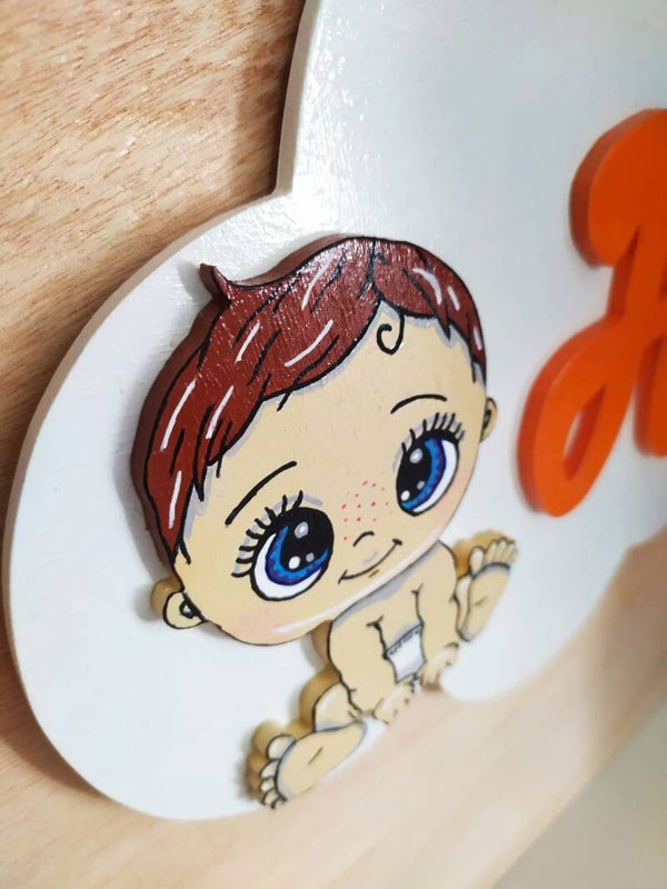 Plaque entièrement faite à la scie à chantourner en contre plaqué. Chaque élément est peint à la main et recouvert d'un vernis aux normes jouets EN71/3.