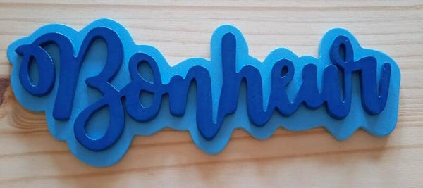 Plaque décorative en contre plaqué, le tout chantourné à la scie, peint et vernis individuellement à la main.