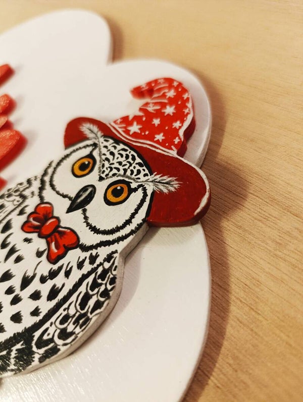 Plaque entièrement faite à la scie à chantourner en contre plaqué. Chaque élément est peint à la main et recouvert d'un vernis aux normes jouets EN71/3.